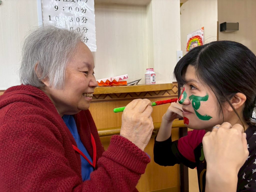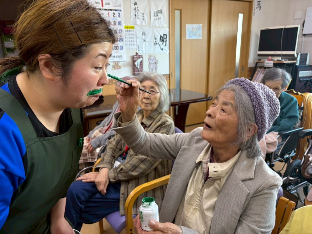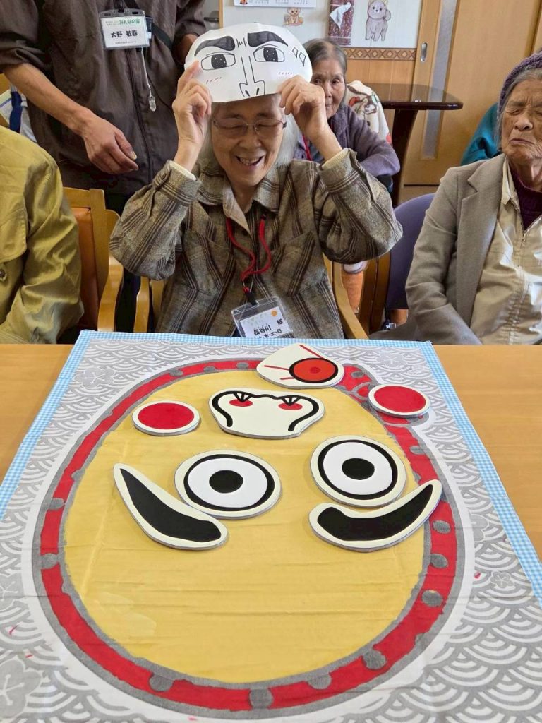 完成した顔を見て思わず笑いが起こり、会場はとても賑やかな雰囲気となりました。利用者様同士で声を掛け合いながら、笑顔あふれる楽しい時間を過ごされていました。