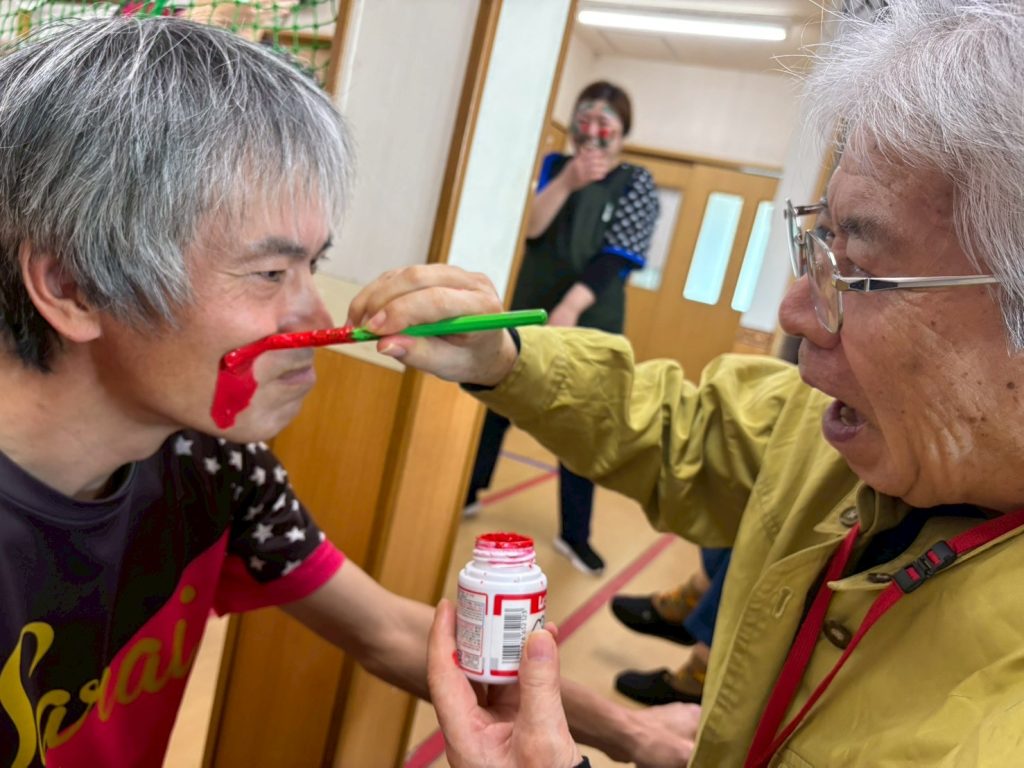 負けたスタッフはお約束の顔塗りとなり、利用者様からもたくさんの笑顔が見られました。